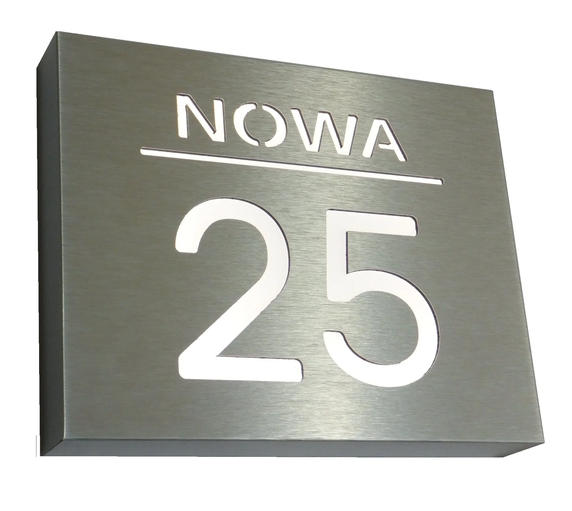 Dla nowoczesnej architektury idealnym rozwiązaniem są kasetony świetlne, dzięki którym numer domu jest przedstawiony w estetyczny i nowoczesny sposób. Napisy są wycinane laserowo lub frezowane w warstwowym aluminium (materiał Dibond), w blasze ocynkowanej lub nierdzewnej, albo w czarnej plexi. Zapewnia to dobry kontrast i czytelność. Dyfuzor, umieszczony z tyłu gwarantuje dobre rozproszenie światła i ochronę przed wilgocią dla elementów świecących i zasilających.